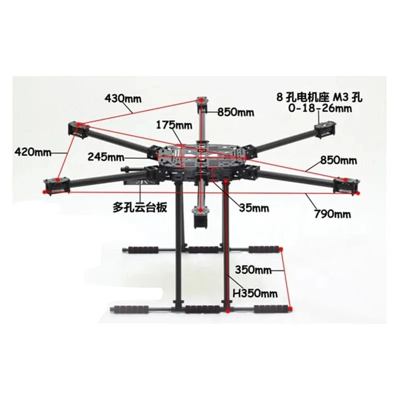 HEXCORE ZD850 FRAME – Full Carbon Fiber 850MM Hexacopter Chassis with Foldable Arms